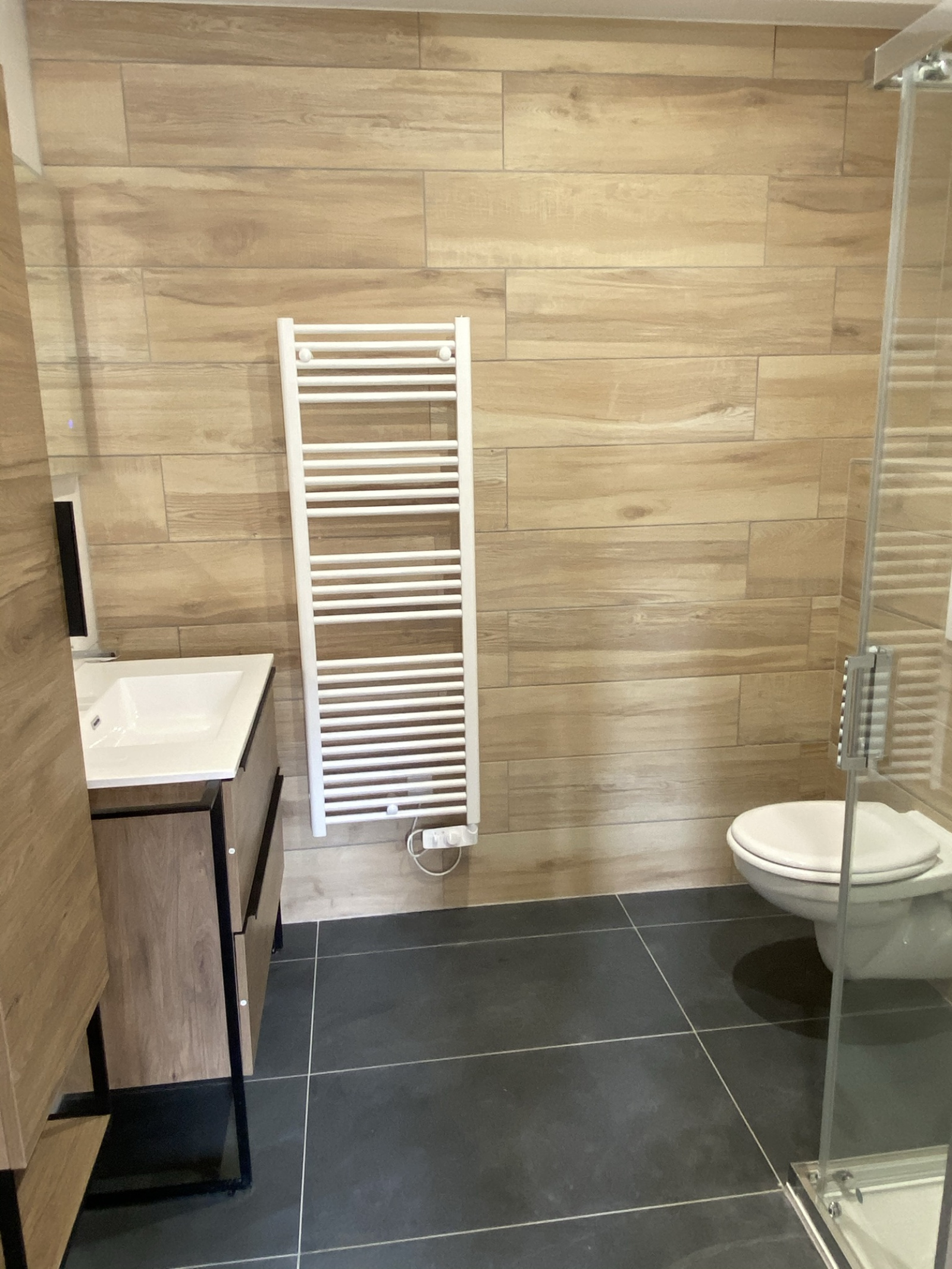 Salle de bains avec douche, meuble vasque et WC*Chauffage individuel électrique*