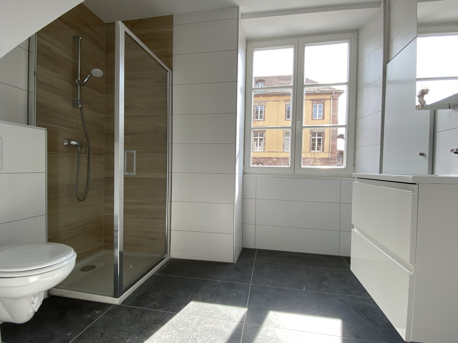 Salle d'eau avec douche, wc et meuble vasque