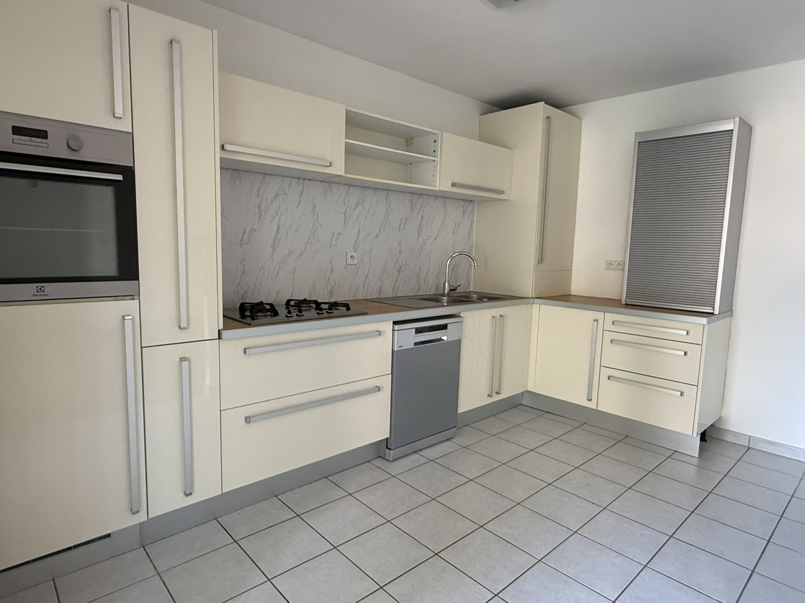 Cuisine équipée (four, plaques, hotte, lave-vaisselle) ouverte sur le séjour