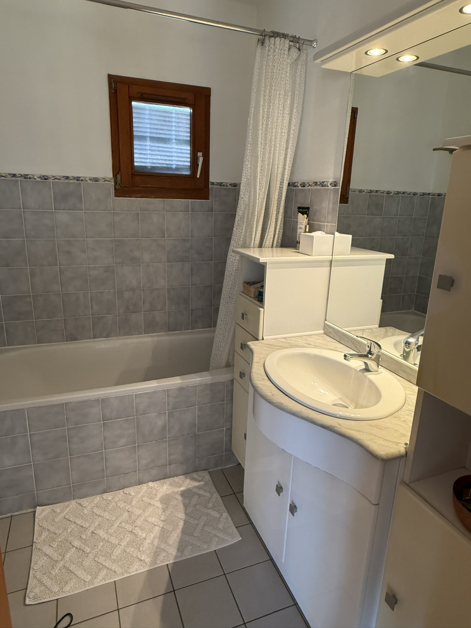 Salle de bains avec baignoire et meuble vasque